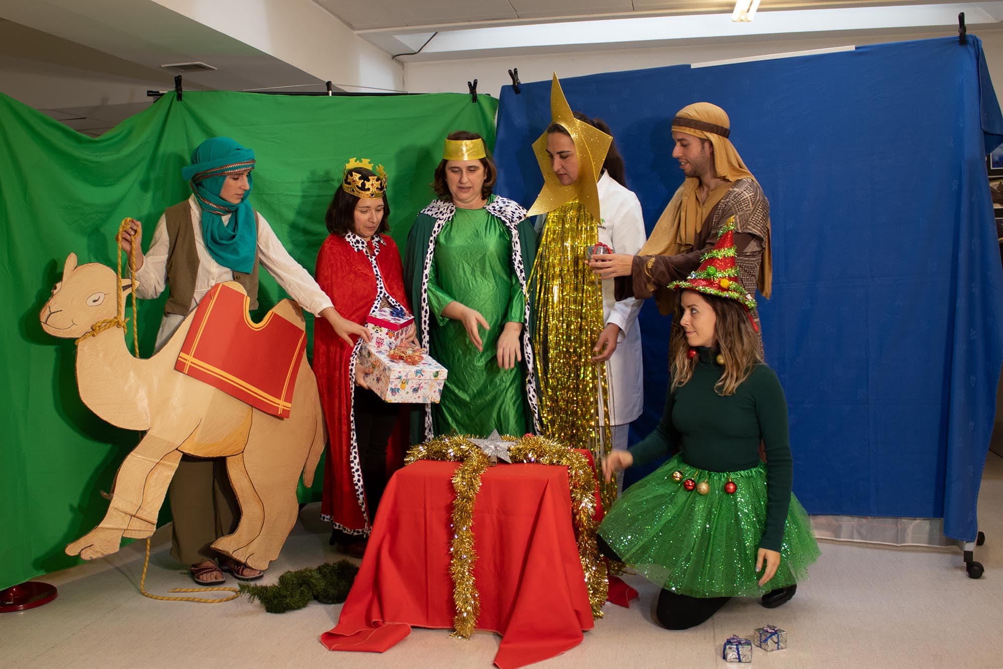 Participantes: Pablo (San José), Natalia (paje con camello), Idoia (Reina maga), Esther (Reina maga), Elisa (árbol de navidad) y Luisa (estrella de Belén).